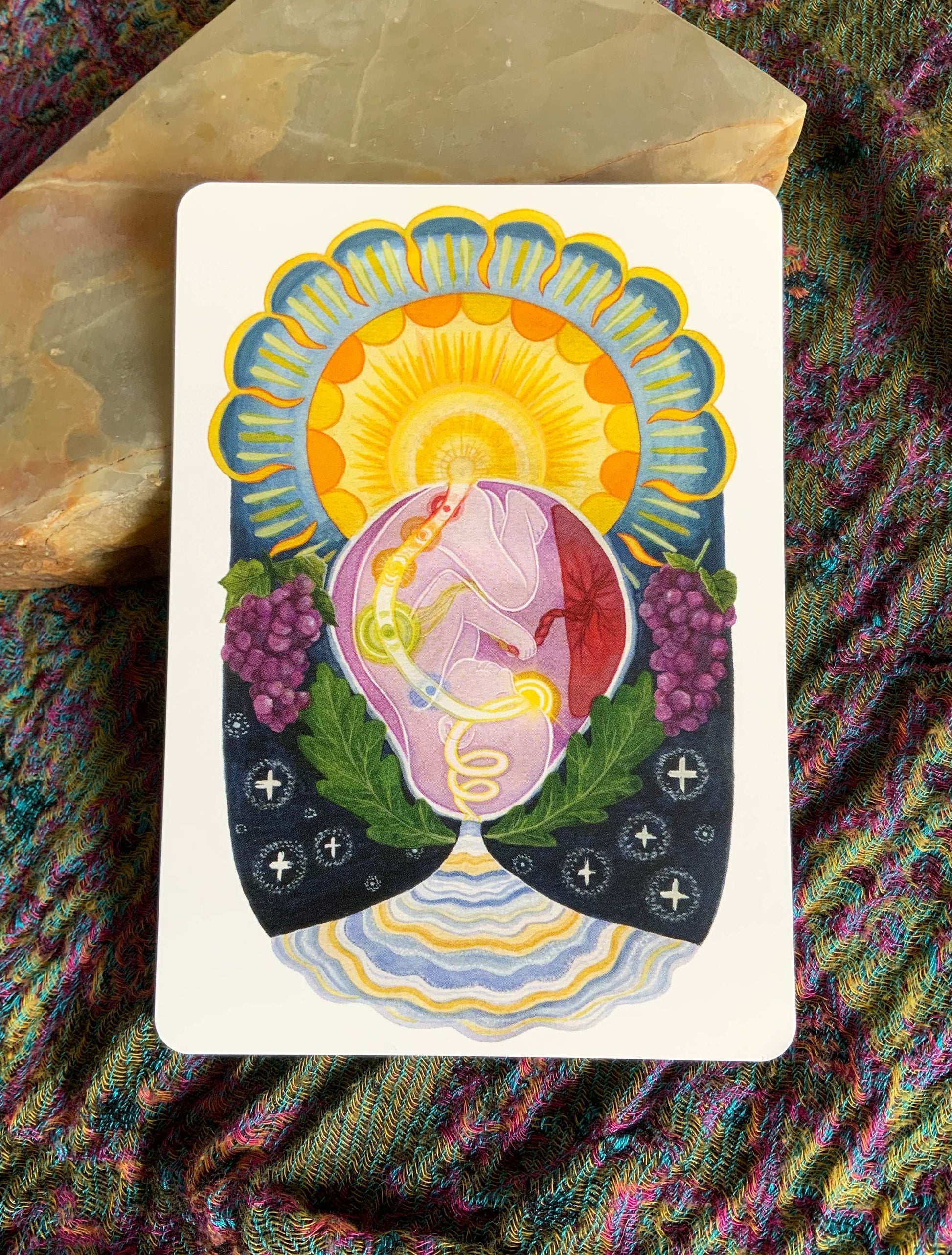 Postkarte A6 mit Aquarell-Illustration, begleitend + bestärkend für Schwangerschaft & Geburt