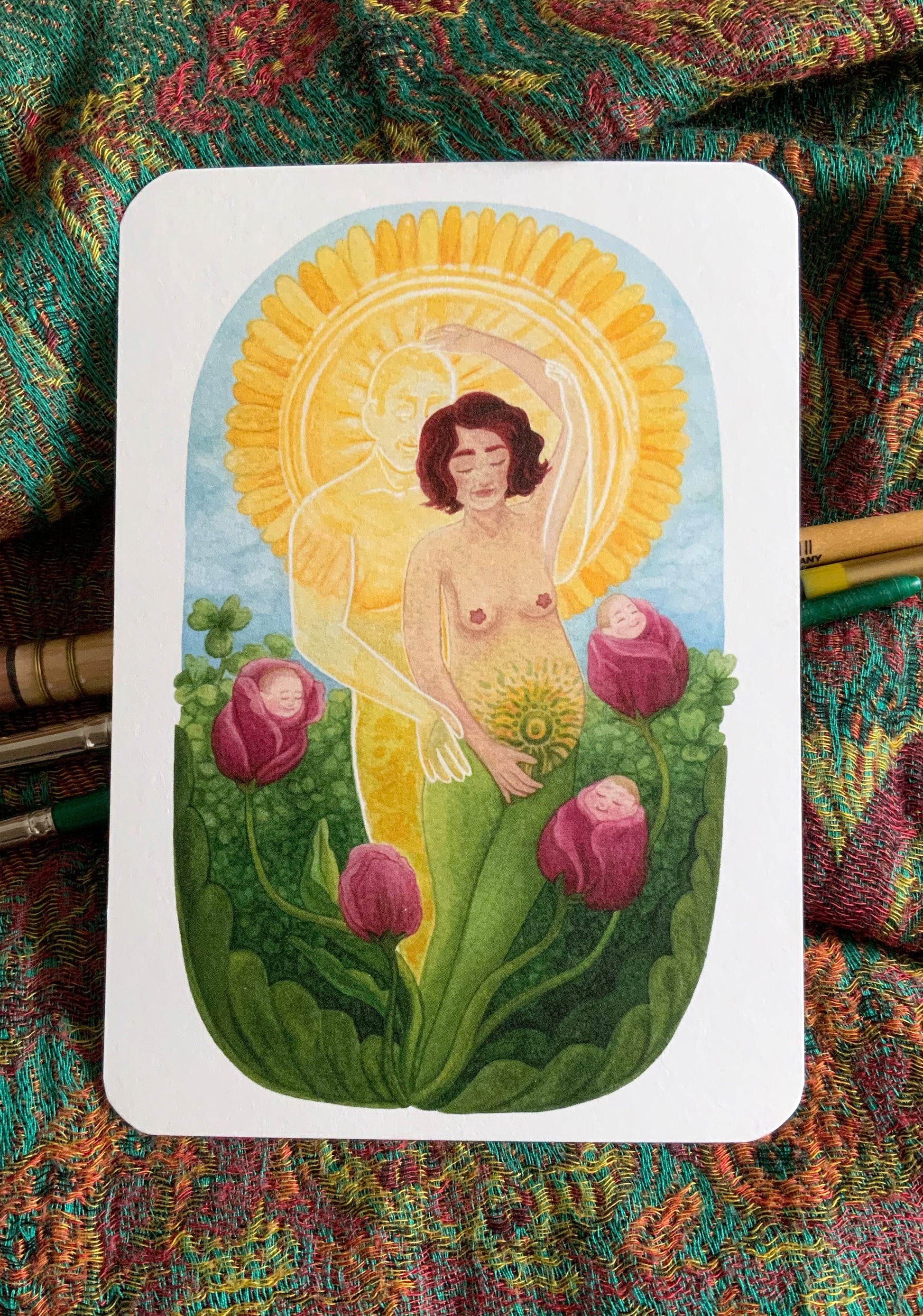 Ob als Geschenk für eine werdende Mutter oder als persönliche Kraftquelle – diese Karte kann ein wertvoller Begleiter durch Partnerschaft und Schwangerschaft sein. Eines von 40 Motiven des 2024 erschienenen Karten-Sets "Verbundenheit & innere Kraft". :)