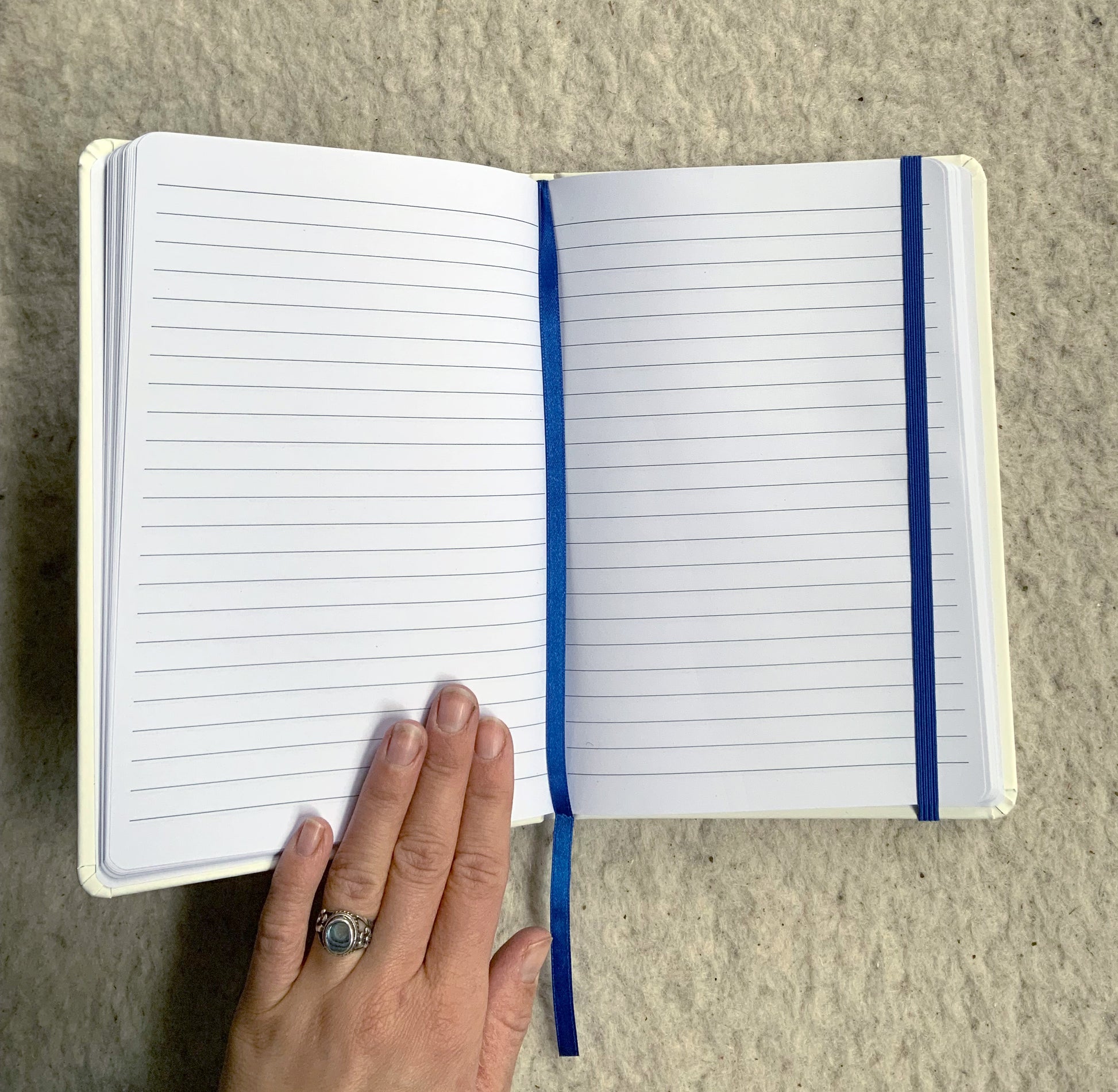 Das Notizbuch "Neubeginn", im praktischen A5-Format mit 96 linierten Seiten – perfekt als Tagebuch, zum Journaling oder als Schwangerschaftstagebuch. Die abgerundeten Ecken und das praktische Gummiband zum sicheren Verschließen machen es besonders handlich.