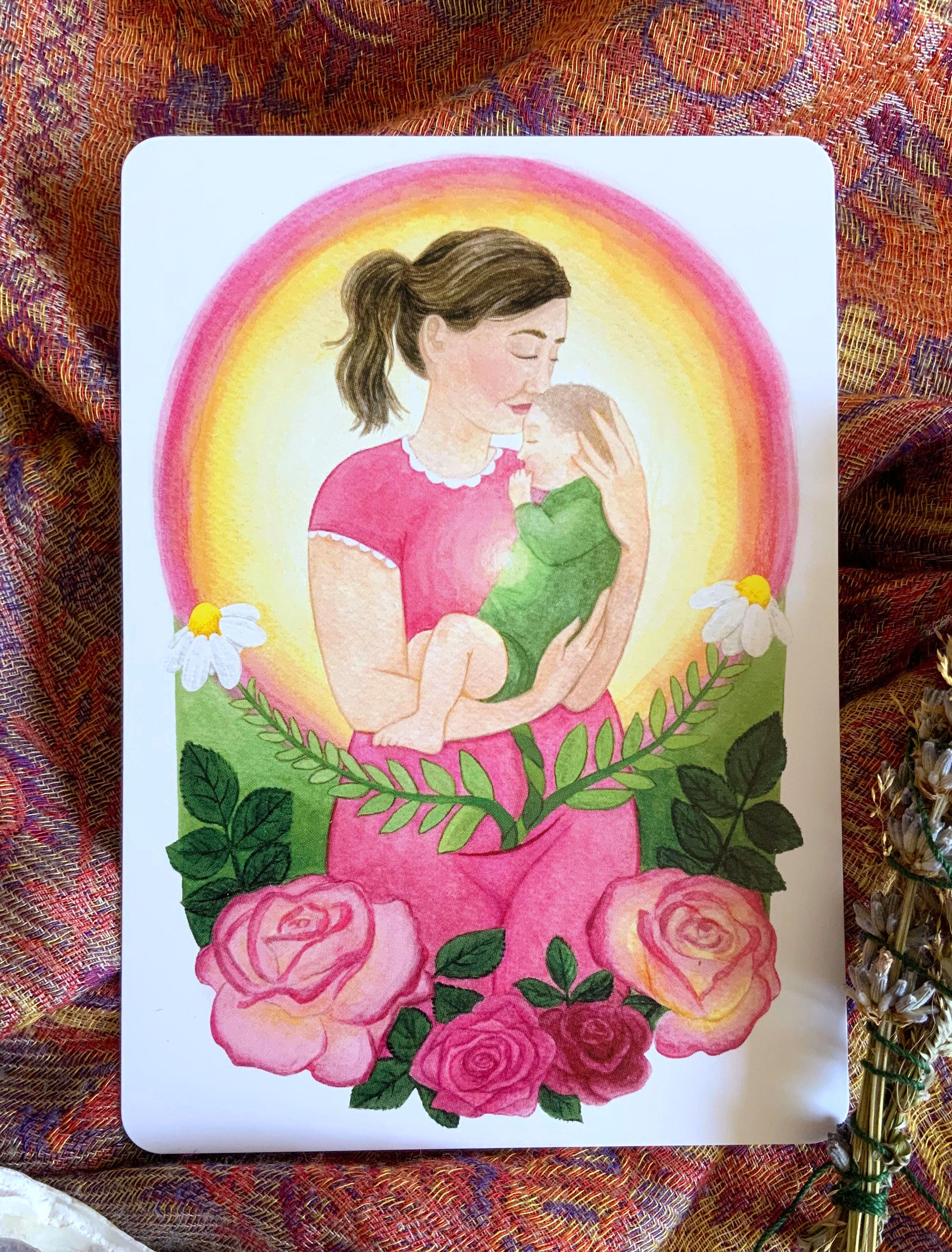 Ob als Geschenk für eine Mutter oder als persönliche Kraftquelle – diese Karte kann ein wertvoller Begleiter auf der Reise zur Mutterschaft sein. Eines von 40 Motiven des 2024 erschienenen Karten-Sets "Verbundenheit & innere Kraft". :)